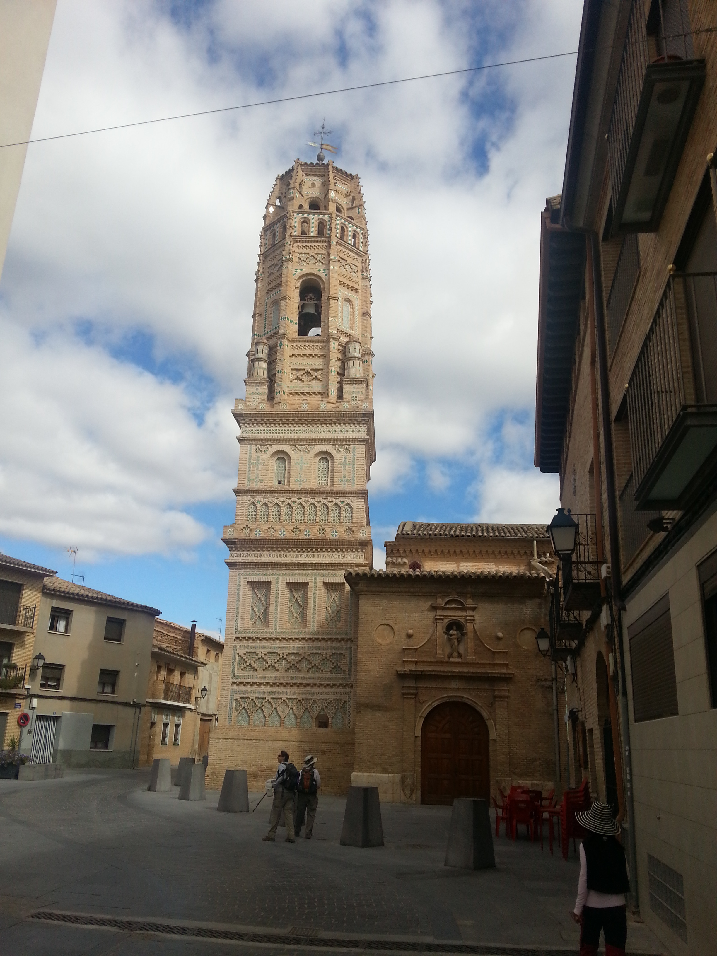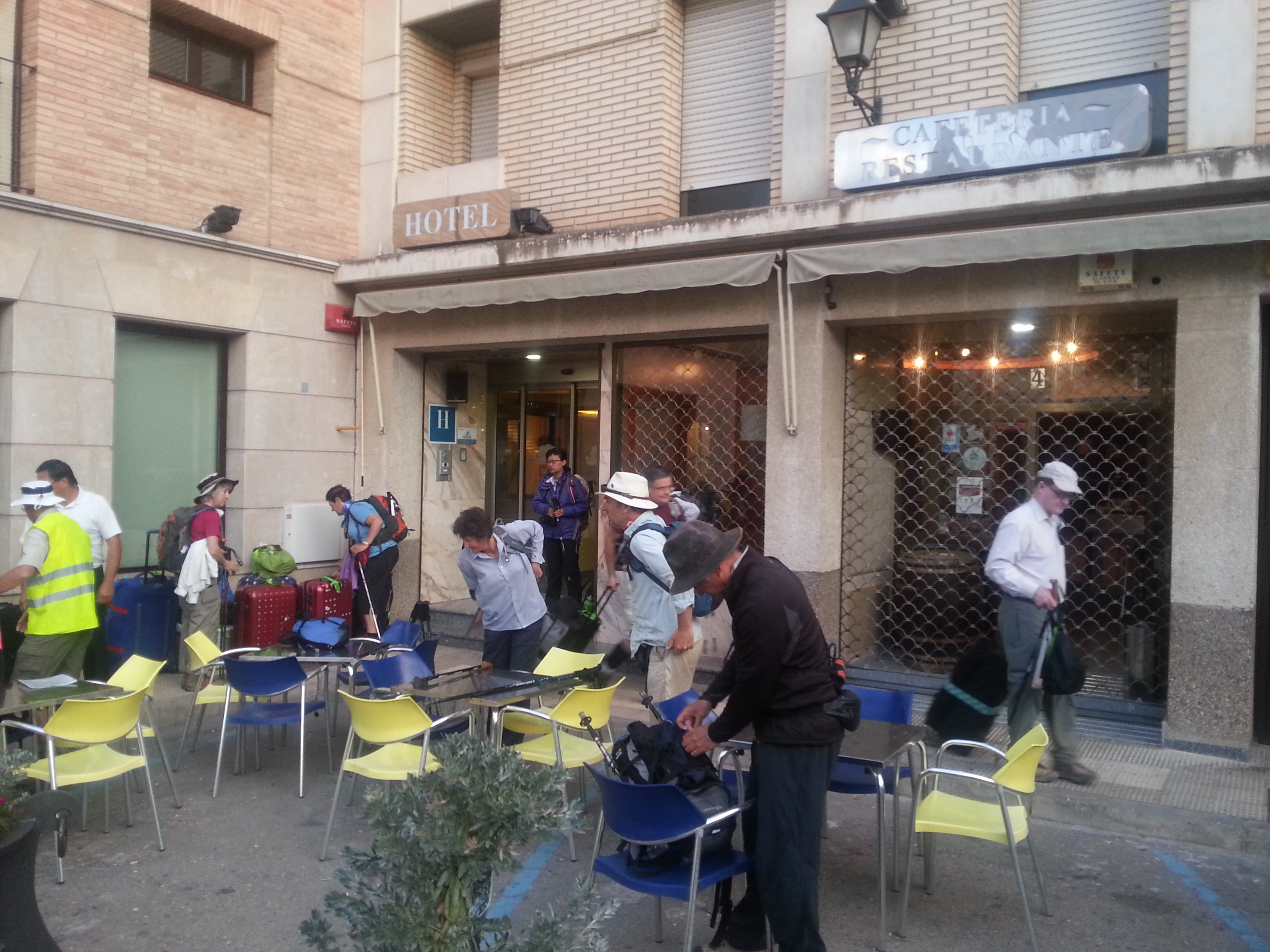 “It was another long walk today of 30.8 kms which we finally completed at 4:20pm. Fortunately the weather was kinder to us today with lower temperatures, cloudy conditions and a cool breeze at our backs. Our first break was the 10 kms mark in a small town called Sobradiel which had beautifully landscaped public buildings and we took the opportunity to get our pilgrim passports stamped there. The group walked well today and covered the first 18.5 kms to our lunch destination in a record time. Our way was a mixture of sealed and unsealed roads which were very stony and uneven in sections. After lunch we only had 12 kms to go and it was not long before we could see the Zaragoza skyline. For the first time we got lost while trying to enter the city because the route had been substantially altered due to recent construction activity. After asking directions we eventually found our way.