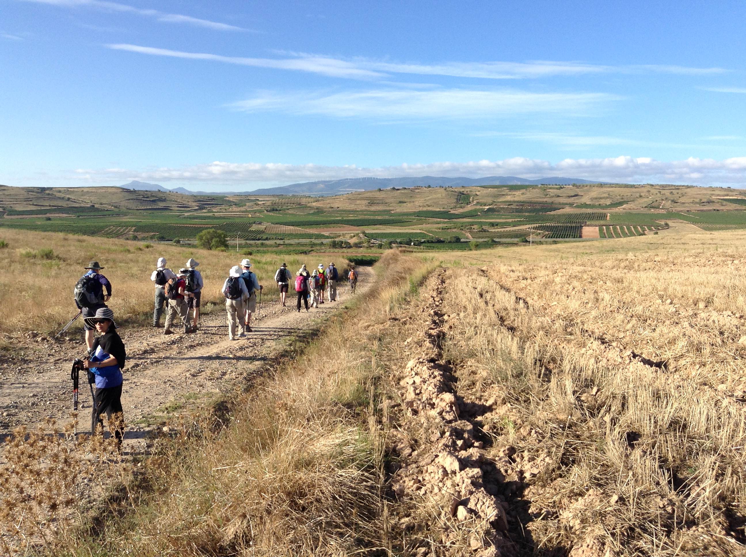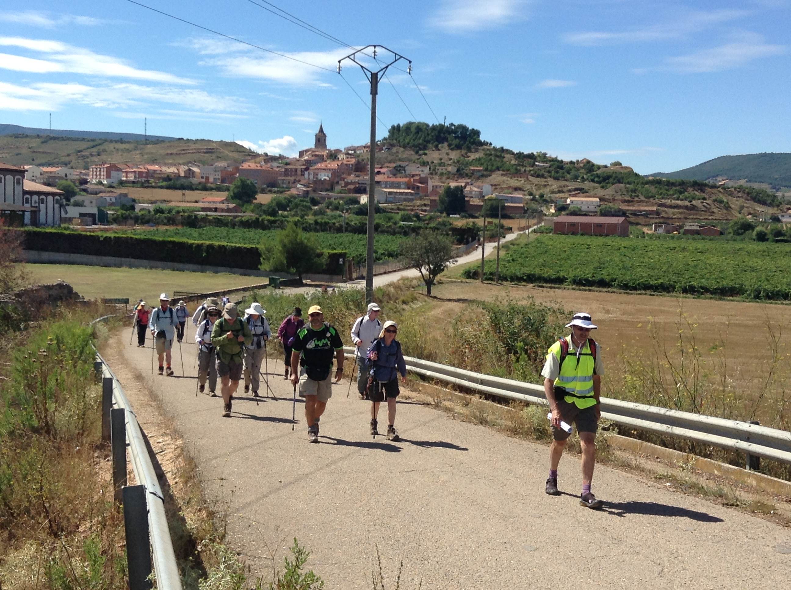 Farming and harvesting was again the theme for today. Peaches, tomatoes and apples. It was pointed out to us today that the Spanish farmers do not build their houses on their land, but instead live in nearby villages and towns, and even park their tractors under the house or at the back or their houses. The group covered 27 kms today and they were thankful to reach the hotel in Tudela at 3:45pm.”