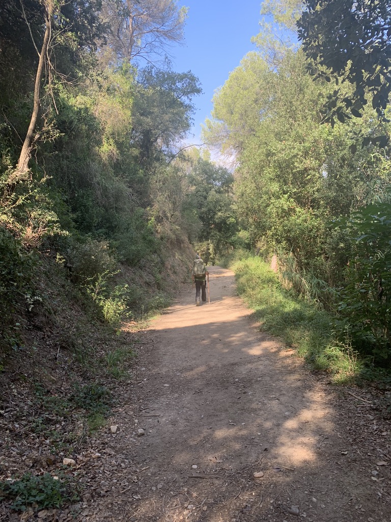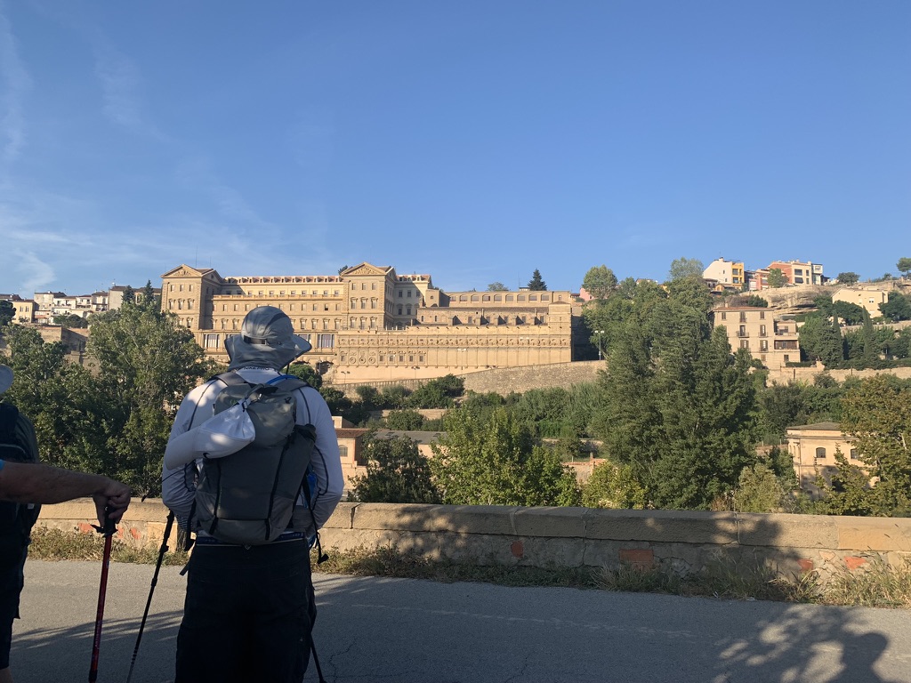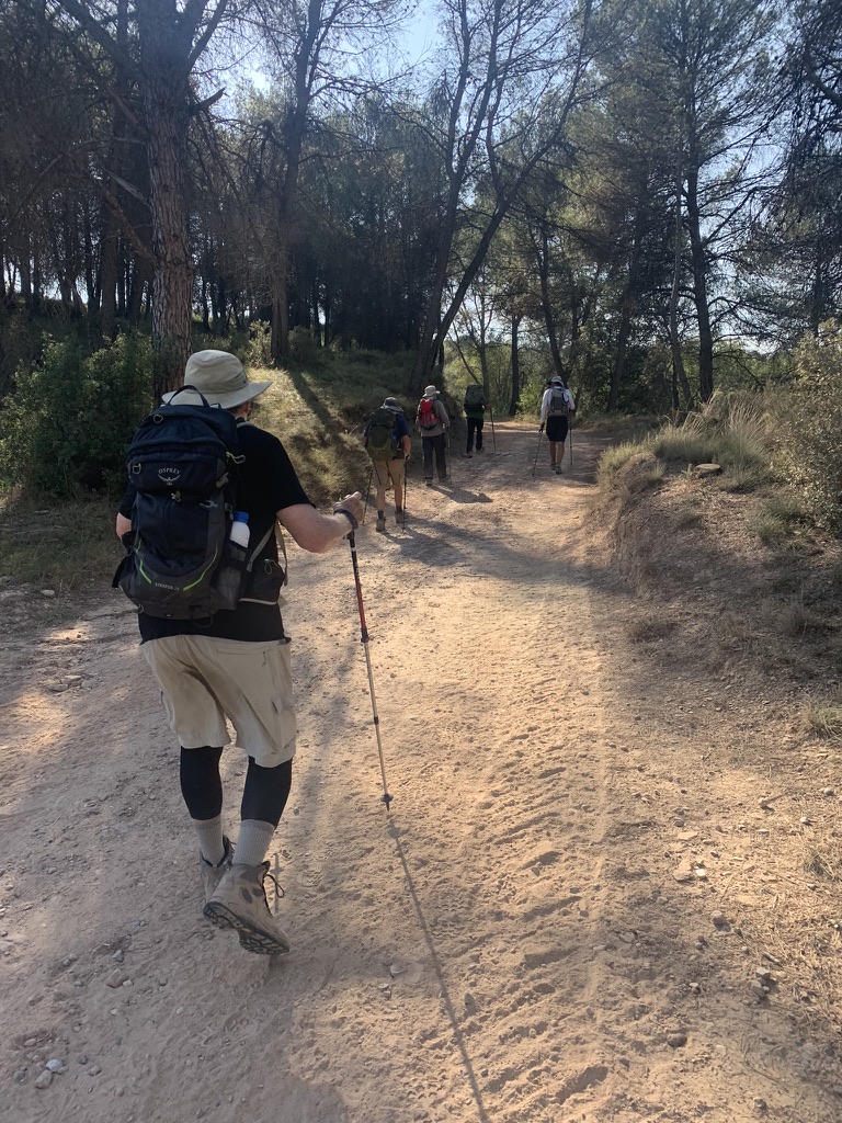 Today was a 25 km walk in 31-degree centigrade weather. We began our day with Mass at 7.00am after which we visited the Black Madonna. The Black Madonna is sometimes referred to as the Virgin of Montserrat. The statue sits behind a sheet of glass. However, one of her hands that is holding a sphere (which symbolizes the universe) is not behind the glass. It is tradition for you to kiss or touch the Virgin’s hand while opening out your other hand to Jesus.