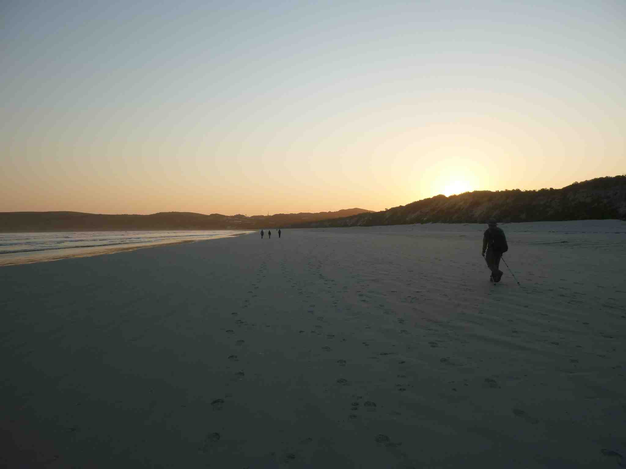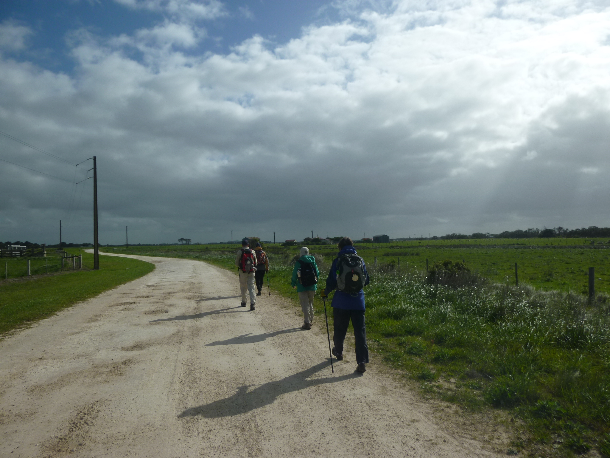 Today was supposed to be an easy day but, although it was shorter than yesterday, it ended up a tough walk because of the 40-50 kilometre per hour winds that blew in off the Southern Ocean and buffeted us about. Some reflected later during Mass that the buffeting was a bit like begin thrown around in life. The gale force winds blew sand into our faces and it was like standing in front of a sand blaster.
