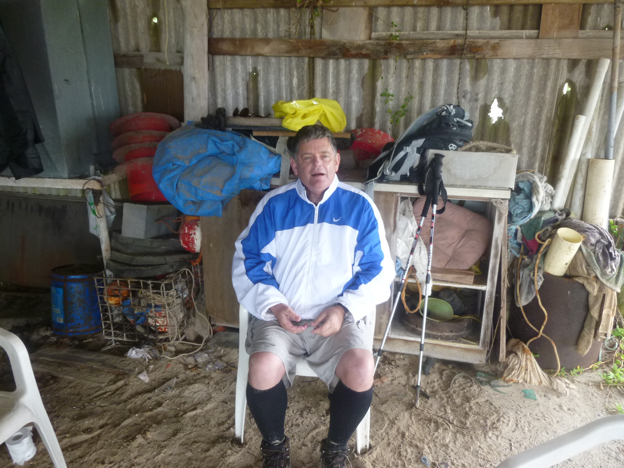 Even though Helen, Jan and Michael had the wind at their backs while they were walking on the beach and we thought they had it easier than, their day was not without difficulty. As they walked around Lake Mombeong they encountered three snakes, so they had to be particularly vigilant.