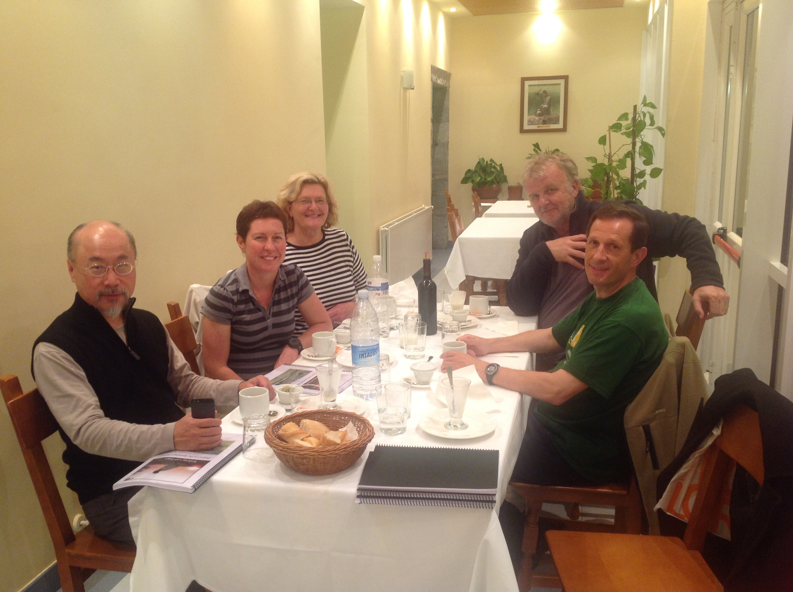 A small group of pilgrims have arrived in Loyola to begin the Ignatian Camino. 4 Australians and one man from Hong Kong will begin walking the Ignatian Camino today, 1 May 2014. They will be guided by Fr Josep Lluis Iriberri SJ, the Spanish Jesuit from Barcelona who developed the Ignatian Camino, and Imanol Goikoetxea a guide from Slow Walking, the travel company which has organised the pilgrimage. Here is part of the group at dinner in Loyola.