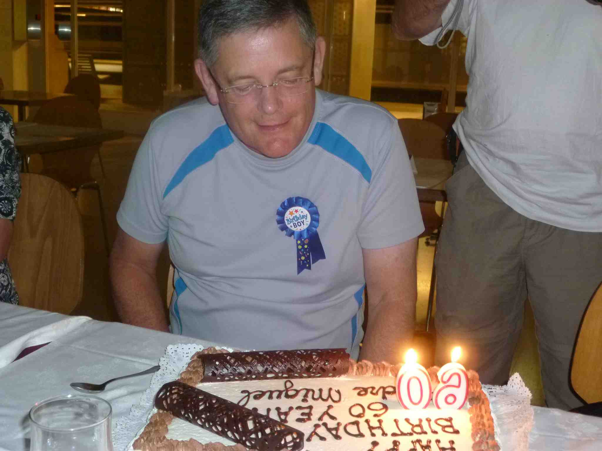 I got a number of birthday presents from the group including: (i) a compass (they have correctly assessed that my sense of direction is poor); (ii) a Swiss Army knife to carry in my day pack just in case I need a cork screw to open a bottle of wine; (iii) a key ring with a bull on it; (iv) an optical mouse for use with my laptop; (v) a small lamp from which to read if I wake up at night.