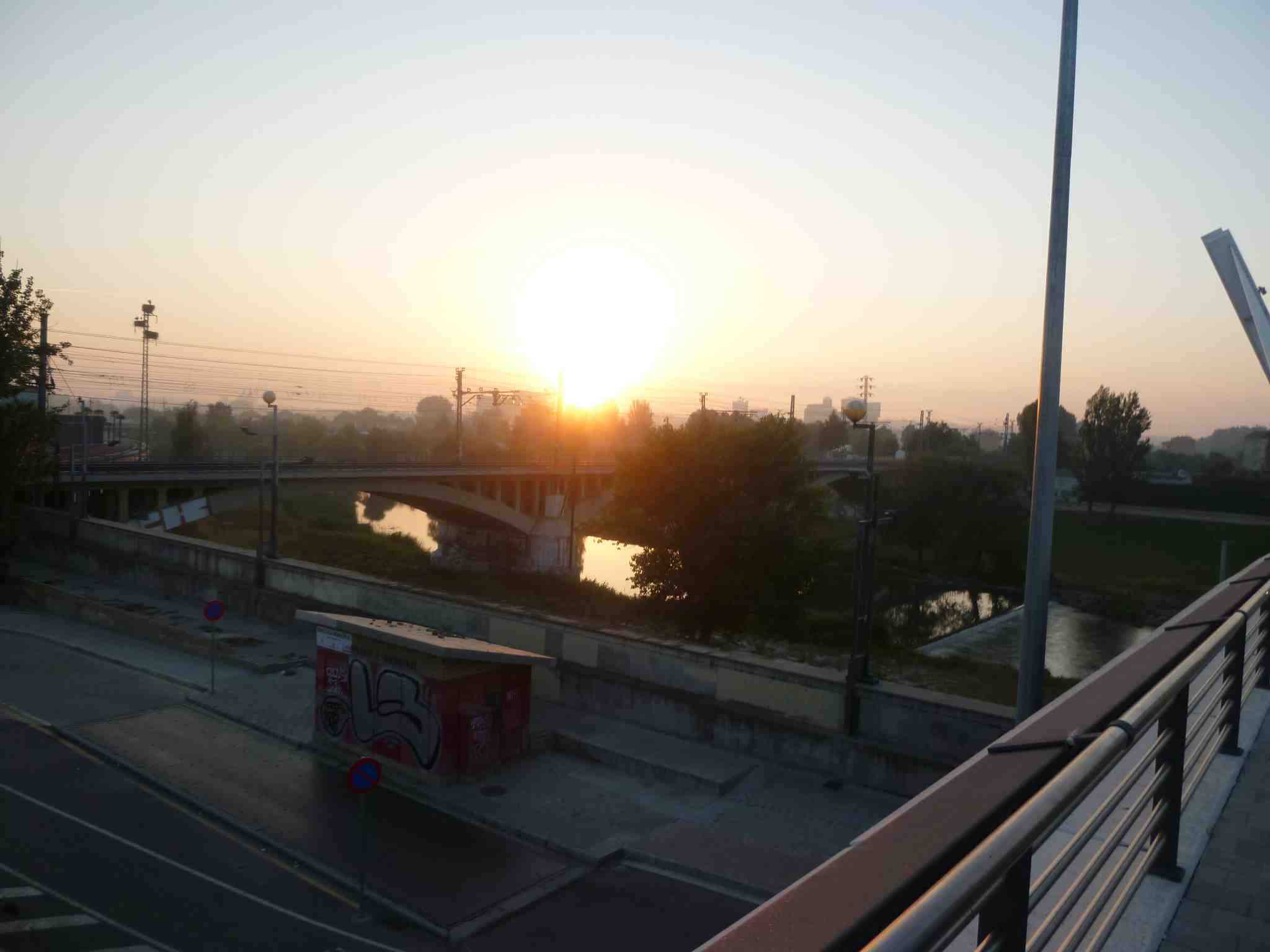 We followed the River Segre into Lleida. The Hotel Catalonia Transit in Lleida is at the train station. From the dining room you can see the fast rains glide into the station. I doubt that I will forget my 60th birthday. In the evening at dinner we had a birthday cake: