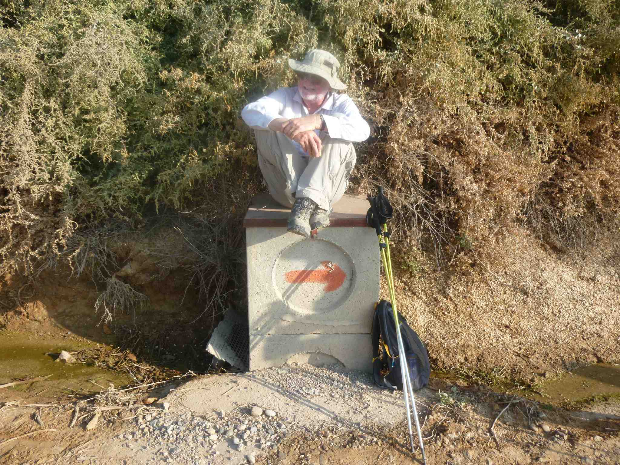 Vin Dillon taking a break (notice the orange arrow which marks the Ignatian Camino)
