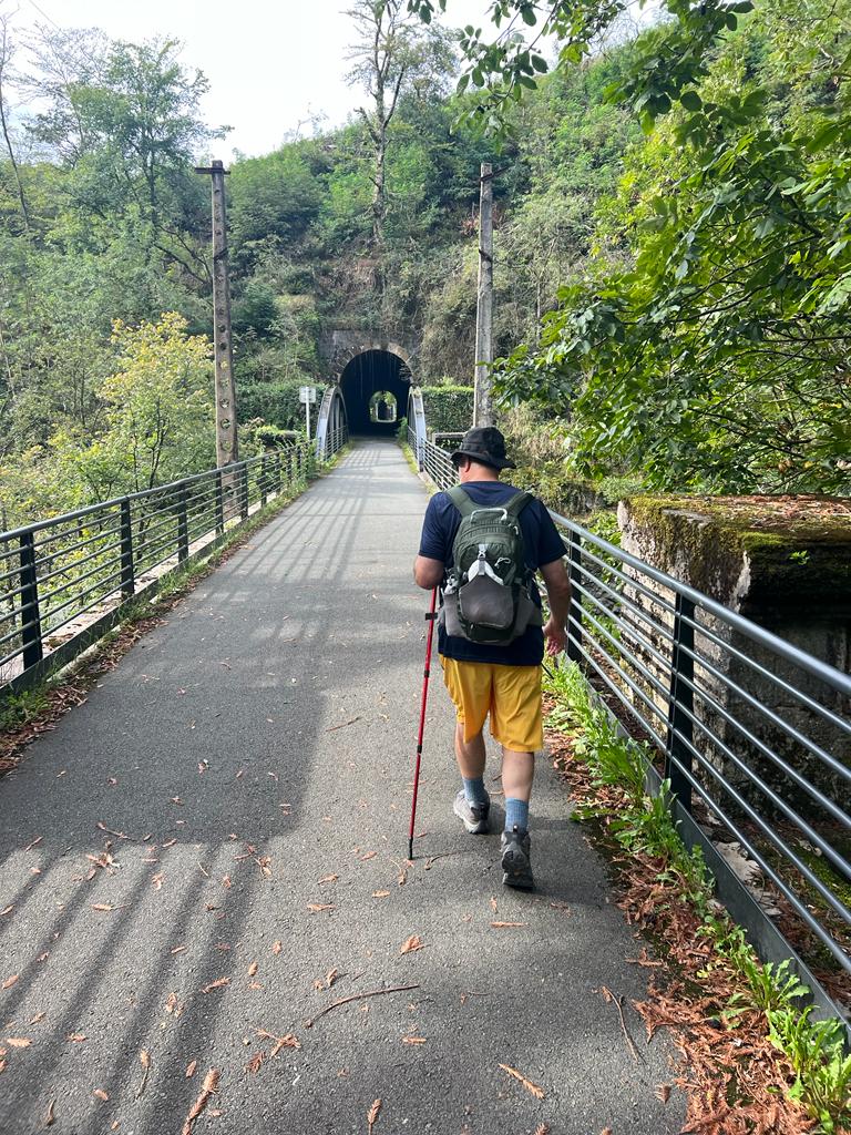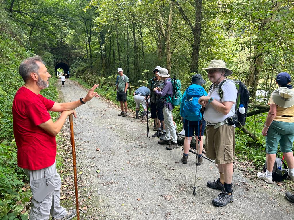 We left Hotel Arrupe and Loyola Sanctuary at 8:15AM and set off on our 20 kilometer walk along the bicycle and walking track that follows the River Urola towards the town of Azkoitia. In Azkoitia we saw the house where Inigo’s mother was born. Much of the day, we followed a disused railway track and passed through many tunnels. The group all managed the walk, which was uphill most of the way.